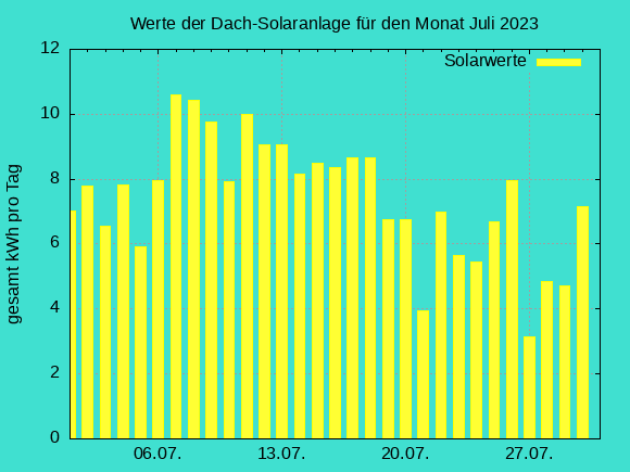 Solardaten der Dachanlage vom Juli 2023
